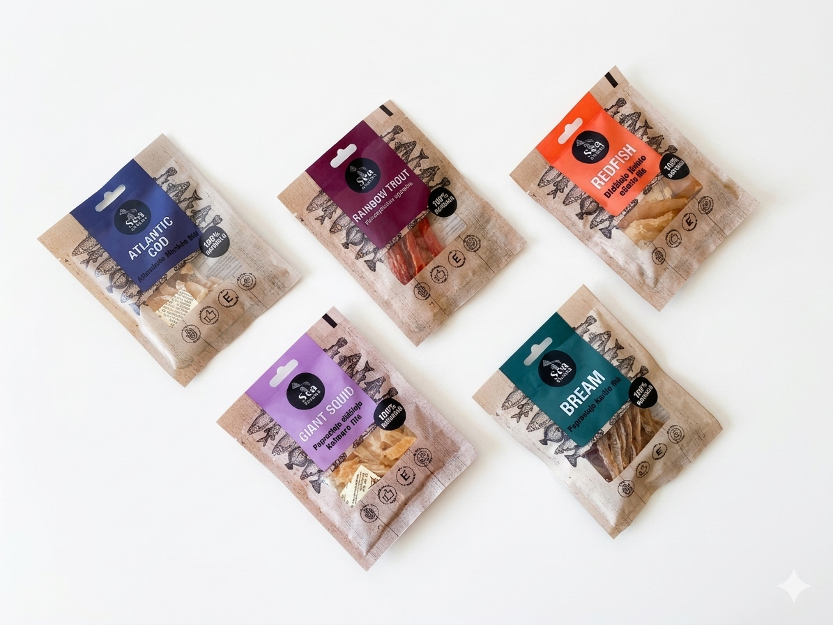 Puikiai tinka posedžiui prie šalto gerimo, dalinimuisi su draugais ar kaip originali dovana. Kiekvienas produktas pasižymi savitu skoniu – nuo švelnių filė juostelių iki intensyvesnių jūros gėrybių.